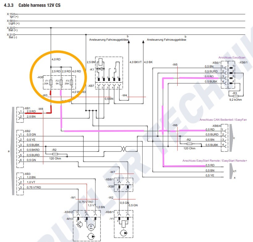 The 20A fuse is required to correctly protect the higher current (ampere) consuming heater unit ie, the heater internal combustion motor, glowpin and larger cross section cables powering the heater.