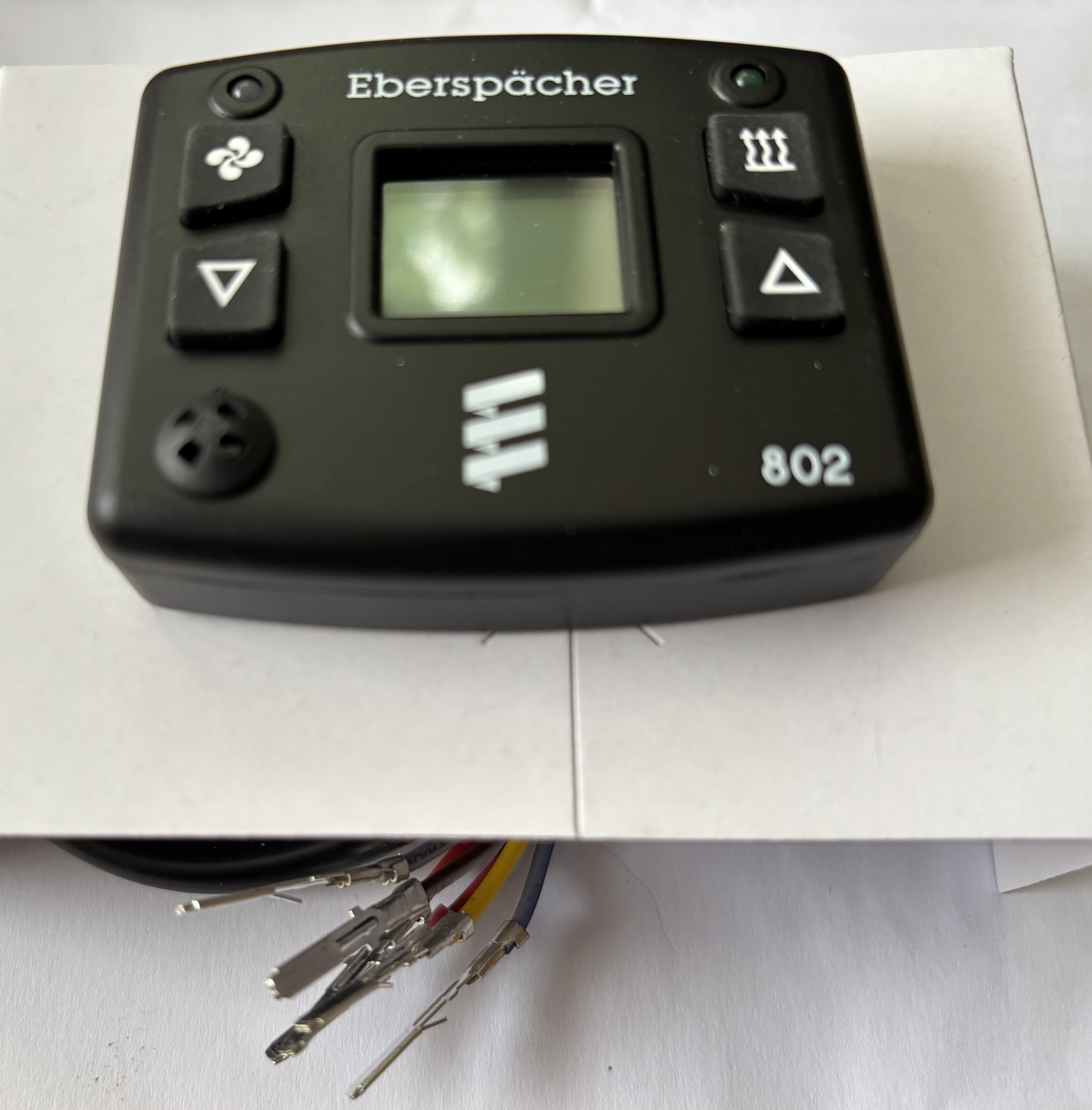The Eberspacher 801 or 802 controller typically is supplied from new with pre crimped 2.8mm Male Junior Power Timer terminals as shown in the attached photo. we supply a specific 6 pin plug that is 100% compatible for these terminals - please see weblink below