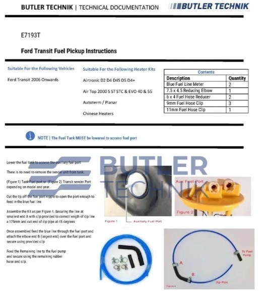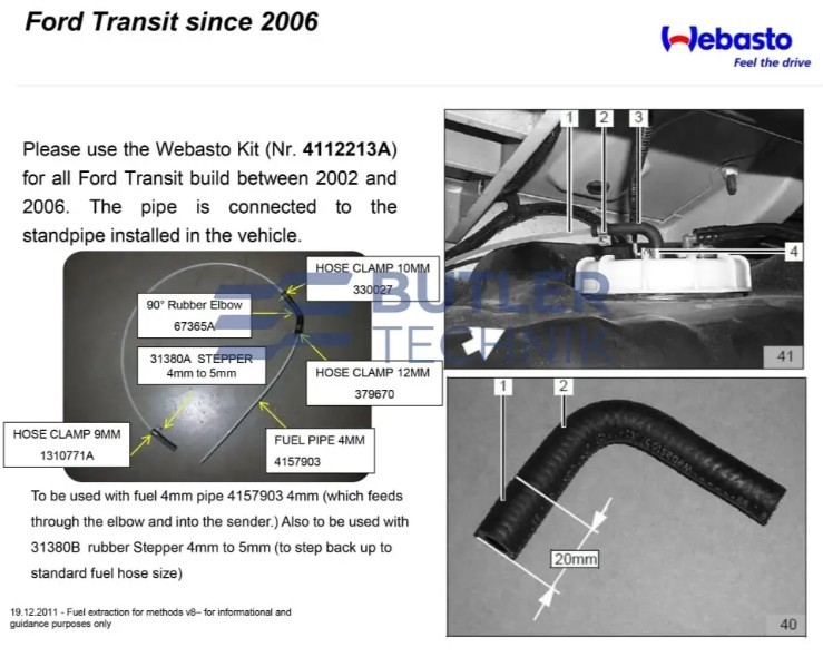 This fuel tank connector kit is described by Webasto as suitable for installing Webasto heaters into Transit build yr 2002 -2006